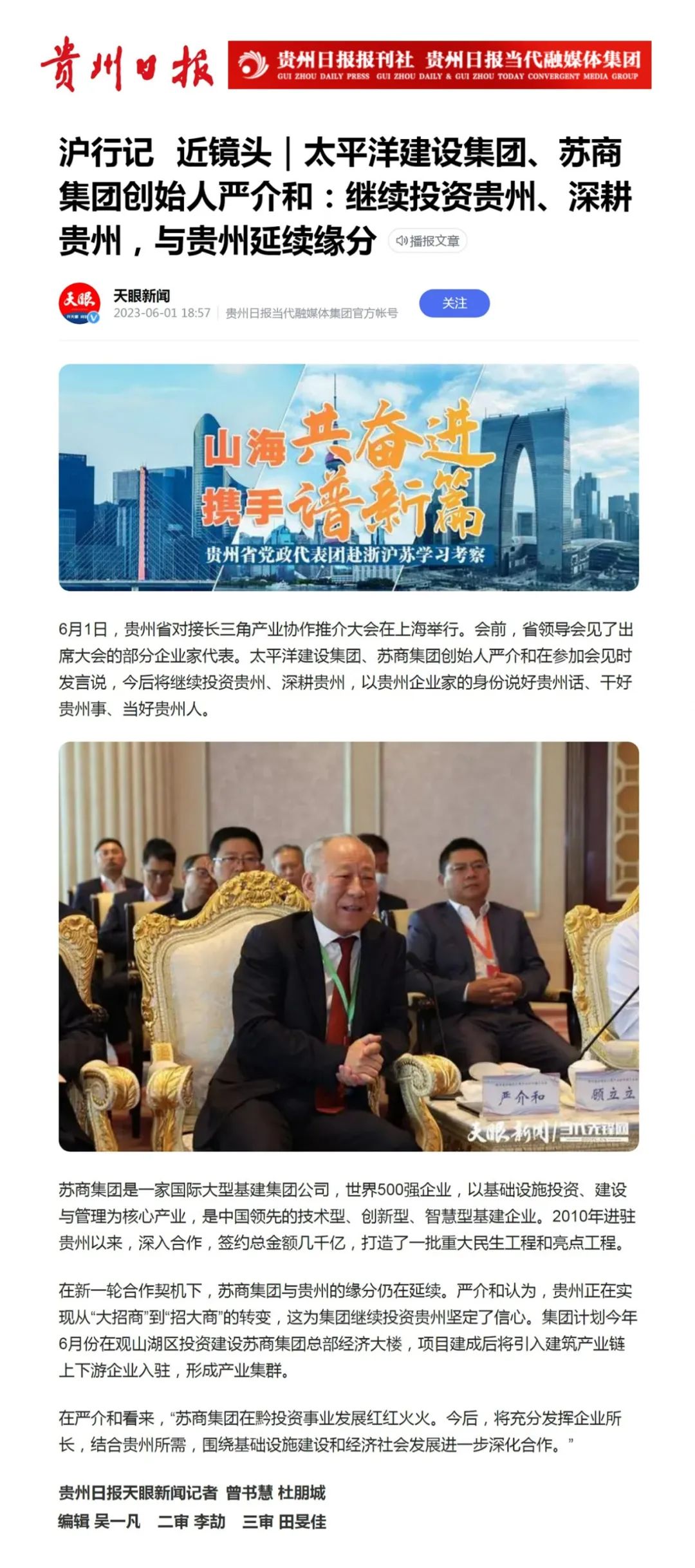 《贵州日报》天眼新闻——严介和:继续投资贵州、深耕贵州,与贵州延续缘分