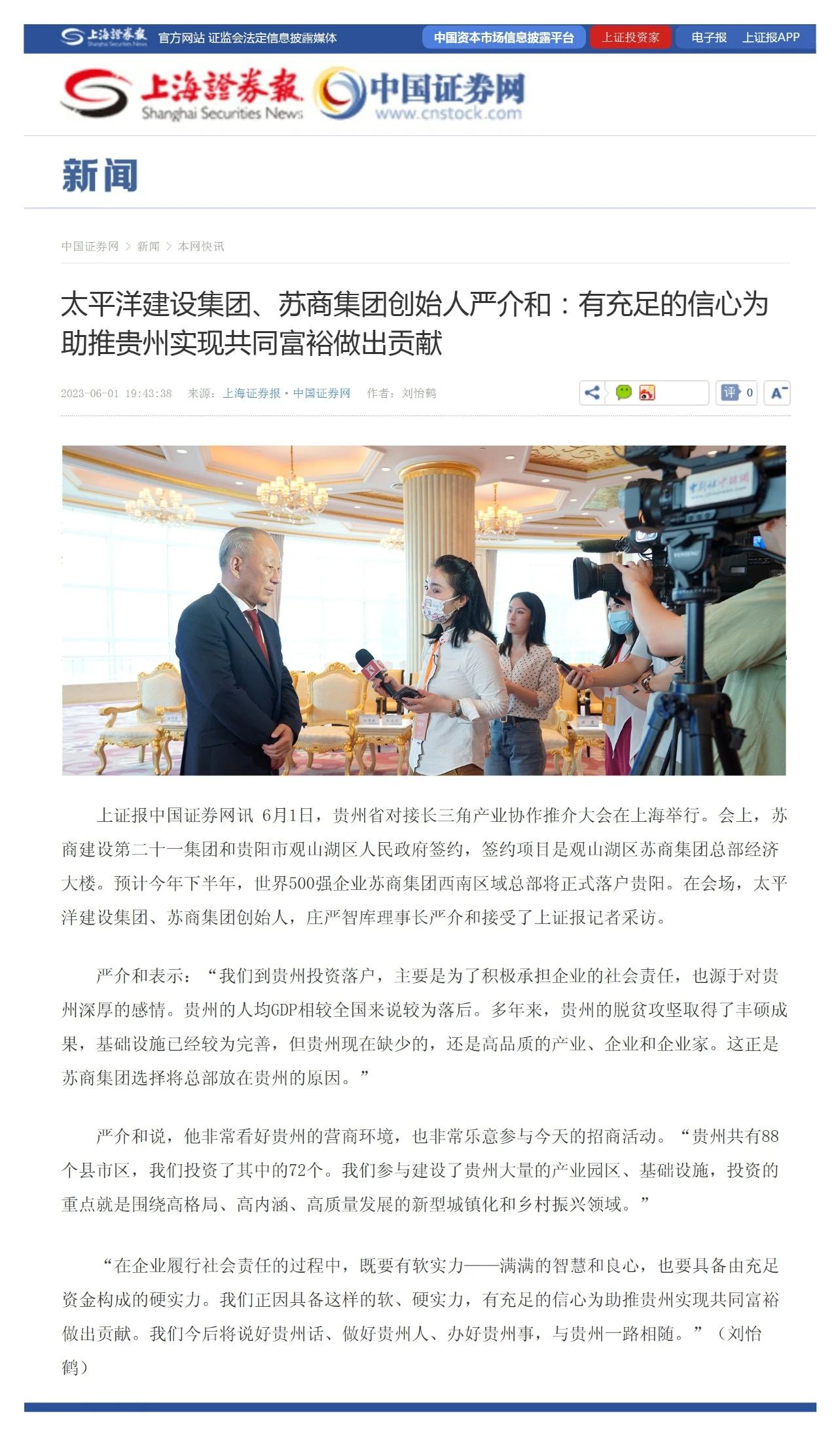 资讯:6月1日,贵州省对接长三角产业协作推介大会在上海举行。会上,苏商建设第二十一集团和贵阳市观山湖区人民政府签约,签约项目是观山湖区国产自拍 总部经济大楼。预计今年下半年,世界500强企业国产自拍 西南区域总部将正式落户贵阳。在会场,太平洋建设集团、国产自拍 创始人,庄严智库理事长严介和接受了上证报记者采访。