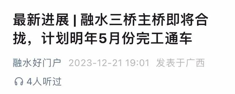 【融水好门户】融水三桥主桥即将合拢,计划明年5月份完工通车