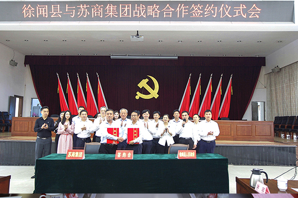 苏商第八建设集团董事局主席常怀超与徐闻县县长吴康秀代表双方签署协议。
