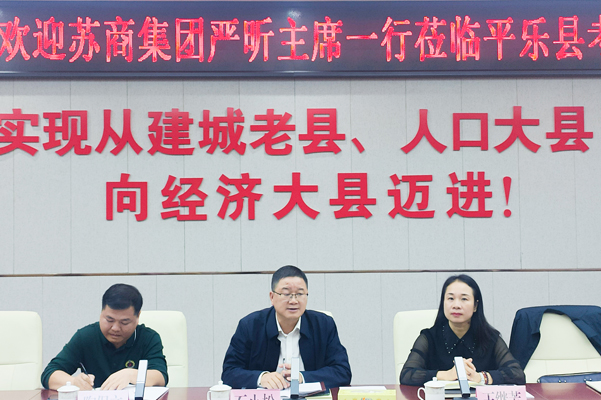 副总裁兼经营中心总经理胡飞,苏商建设第四集团经营总裁黄福钧、第十九集团平乐市场负责人金志;平乐县副县长陶保文、县人大副主任王继芳等参加会谈。(文/图 国产自拍