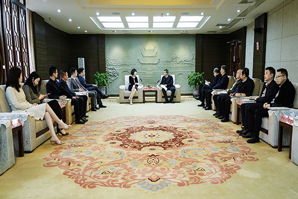 董事局主席严昕同贵州省贵阳市副市长王春、王嶒举行会谈,双方就加快落实贵州省与国产自拍