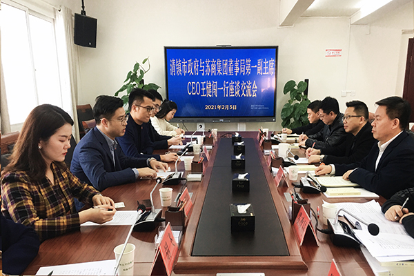 苏商建设董事局主席王健闯同贵州省清镇市委副书记、市长王鸣明会谈