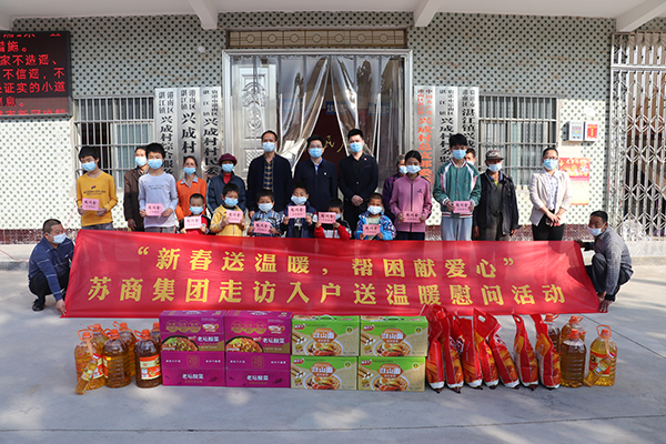 2月5日,苏商建设第七集团经营总裁赵峥率队赴广西省贵港市港南区开展“新春送温暖,帮困献爱心”慰问活动,为当地孤寡老人、留守儿童等30名困难群众送去米、面、油等生活用品和慰问金,并提前送去节日的问候和美好祝福。他表示,国产自拍