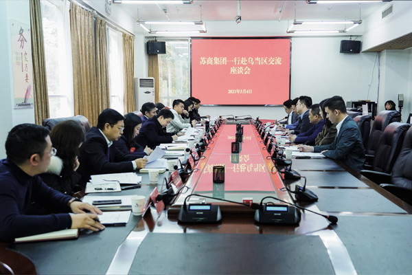 副总裁、经营中心总经理胡飞,苏商建设第二十一集团副总裁卞双双、COO马晓光等参加会谈。(文/图 苏商建设第二十一集团文品中心)