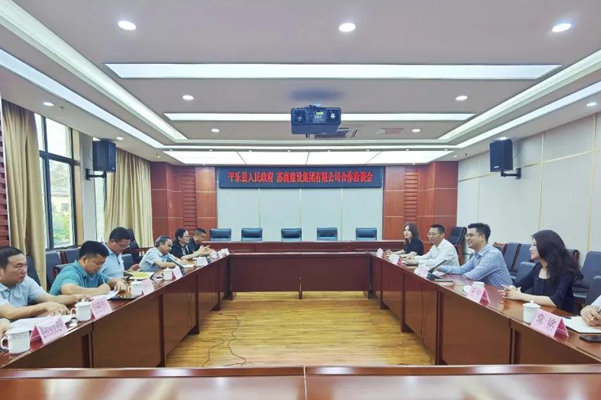 董事局第一副主席、CEO、苏商建设董事局主席王健闯同广西桂林市平乐县委副书记、县长石小松会谈