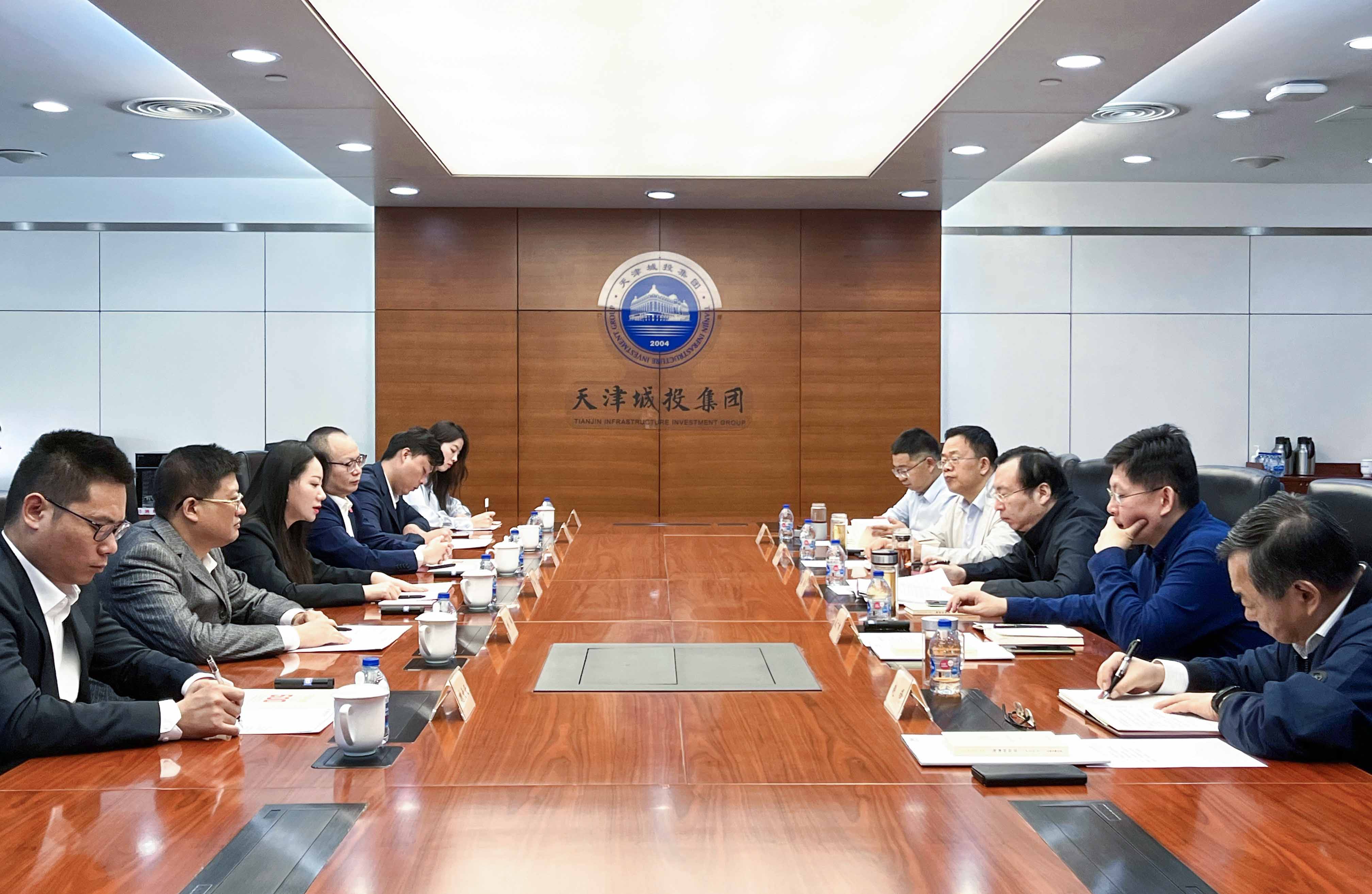 天津城投集团副总经理汲广林,总会计师潘春辉,总工程师赵锋,资产(投资)管理部总经理王永威;苏商建设第二十七集团董事局主席王强,星展建设副总裁刘伟,苏商建设第二十七集团CEO陈涛,星展建设工程中心总经理魏天天,苏商建设第二十七集团总裁张丽霞等参加会谈。