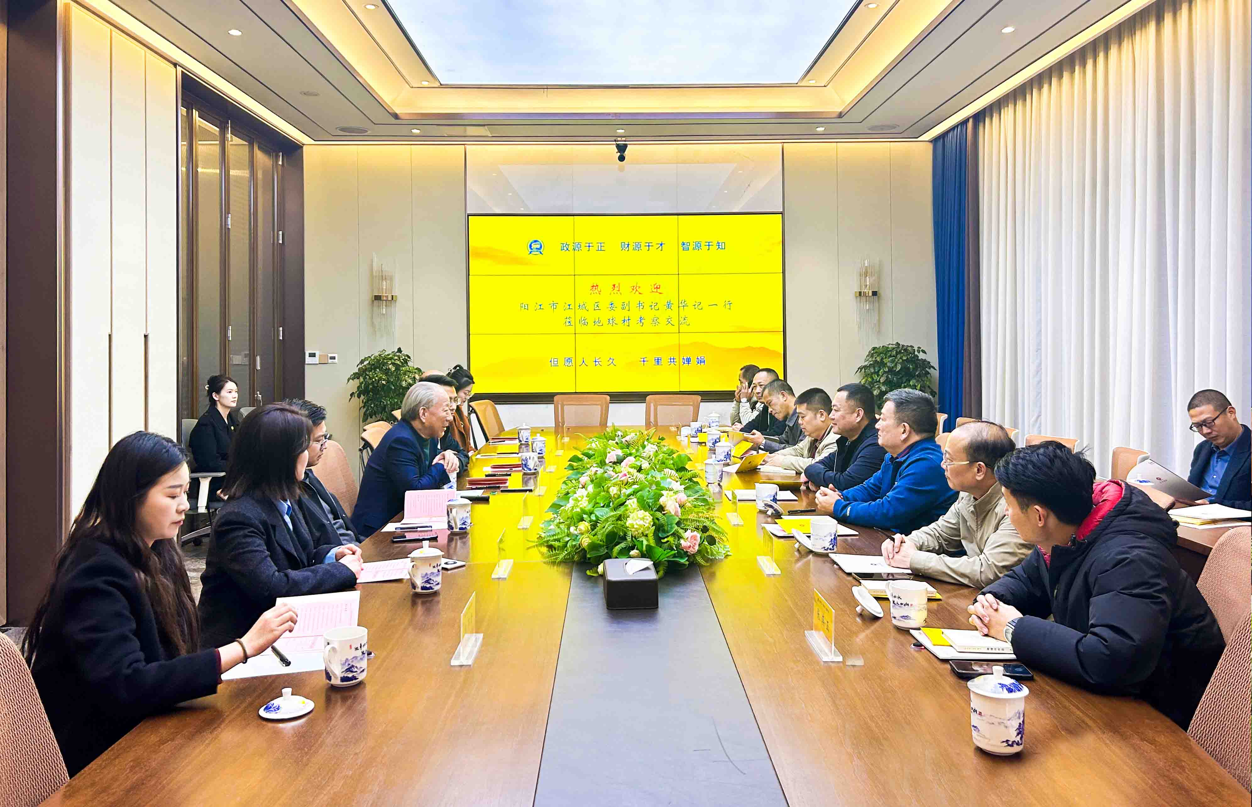 阳江市江城区副区长余旭斌,区政协副主席陈华满,白沙街道党工委书记陈光耀,区委办公室副主任张其正,区住房城乡建设局局长韩玉平,区农业农村局局长司徒尤权,阳江市自然资源局江城分局副局长冯而健;苏商建设第十七集团董事局主席吕明明,阳江市场负责人马建明,经营总裁杨沛垚,总裁助理方慧等参加会谈。