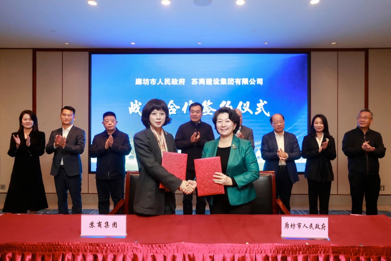 廊坊市住建局、城管行政执法局、发改委、交通局、水利局、商务局主要负责人,廊坊开发区、三河市、广阳区、安次区、固安县、永清县、霸州市主要负责人;苏商建设第二十三公司董事长李志华,苏商建设第十七公司董事长马建明,苏商建工区域总裁刘伟等参加签约仪式。